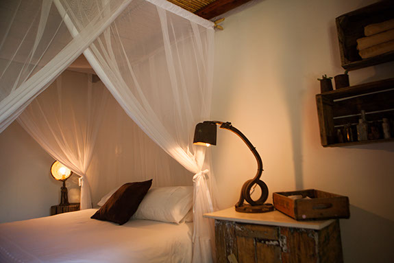 Cottage 4 has a large bedroom with a four-poster queen bed. This room has a shower only. The adjoining lounge/kitchen area has couches and a dining table. This room has it’s own braai area on the verandah.